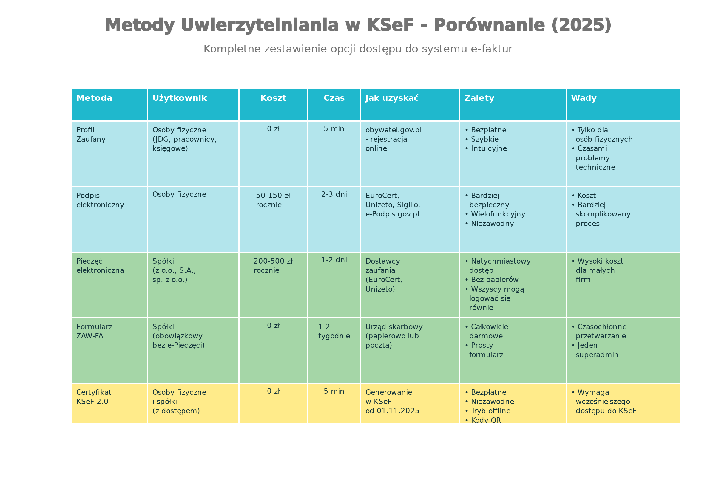 Metody uwierzytelniania: Profil Zaufany, podpis kwalifikowany, certyfikaty KSeF 2.0